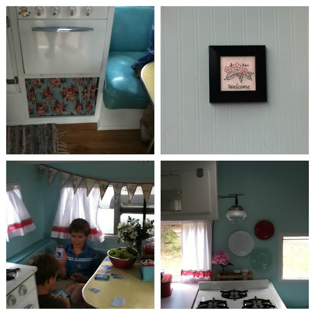 Absolutely adorable! I am so happy that you and your family had a great time. You did a fantastic job on your little trailer. I stumbled across your Blog when looking for inspiration for a 1962 Aloha trailer I bought a couple weeks ago. Let me tell you, you have inspired me enormously. Love it, love it, love it. Look forward to hearing and seeing the details on the finishing touches. You're a really neat woman. Thanks.